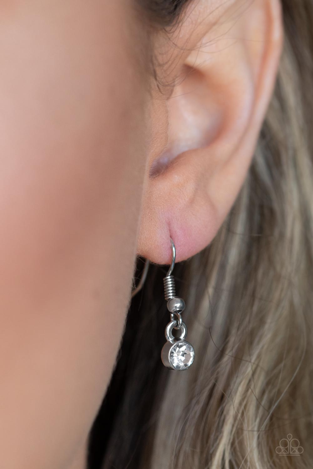Capped in a white rhinestone encrusted fitting, glittery silver ribbons of white rhinestones delicately wrap around the top of a dramatically oversized white teardrop gem. The dazzling pendant swings from the bottom of a lengthened silver chain, creating a glamorous statement piece. Features an adjustable clasp closure.