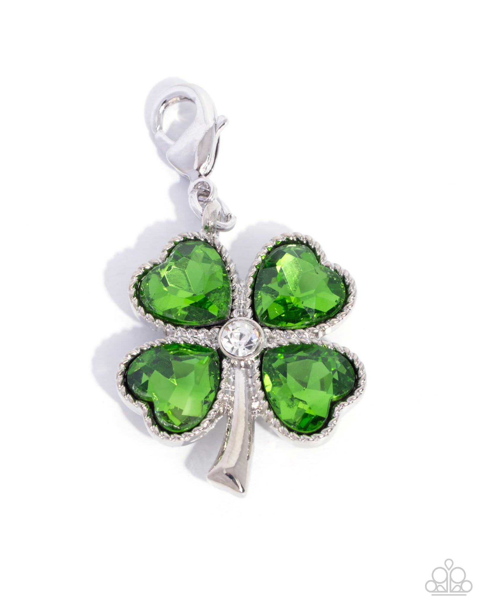 Paparazzi Lucky Luminescence Green ✧ Rhodium Plated Charm